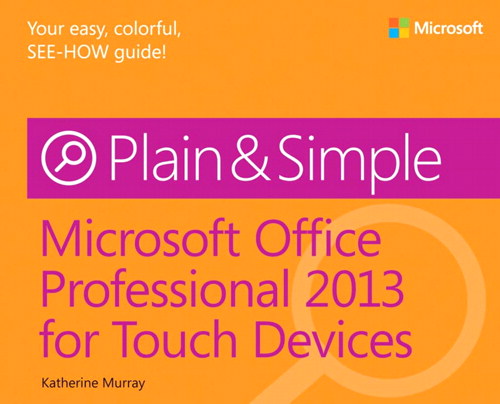 Microsoft Office Professional 2013 for Touch Devices Plain ... Learn the simplest ways to get things done with Microsoft Office 2013 for Tablets Get the full-color, visual guide that makes learning Microsoft Office 2013 on your touch-enabled devices plain and simple! Follow the book's easy steps and screenshots and clear, concise language to learn the simplest ways to get things done with Microsoft Word, Excel, Outlook, PowerPoint, Access, Publisher, and ... Microsoft Office Professional 2013 for Touch Devices Plain ... Office Professional 2013 for Touch Devices Plain & Simple. Katherine Murray. ... about an Office 2013 book for touch devices in the first place, and for being a great source of support and ... Microsoft Office Professional 2013 for Touch Devices Plain & Simple Microsoft Office Professional 2013 for Touch Devices Plain ... Learn the simplest ways to get things done with Microsoft Office 2013 for Tablets Get the full-color, visual guide that makes learning Microsoft Office 2013 on your touch-enabled devices plain ... - Selection from Microsoft Office Professional 2013 for Touch Devices Plain & Simple [Book]
